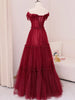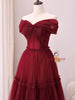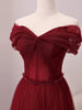 Burgundy Tulle Pleats Beading Off the Shoulder Prom Dress