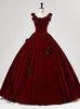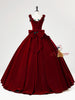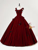 Burgundy Velvet Straps 3D Flower Bow Prom Dress
