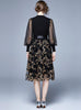 Embroidered Floral Bubble Sleeve Mesh Dress