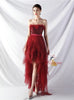 Hi Lo Tulle Strapless Sequins Prom Dress