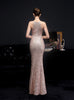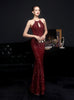 Long Halter Sequined Fishtail Evening Dress