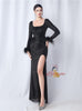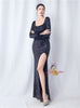 Long Sleeve Mermaid Sequins Split Prom Dress