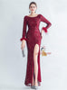 Long Sleeve Split Sequins Prom Dress