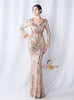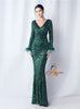 Long Sleeve V-neck Mermaid Sequins Prom Dress