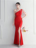 Mermaid One Shoulder Beading Split Prom Dress