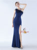Mermaid One Shoulder Feather Split Prom Dress