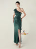 Mermaid One Shoulder Sequins Split Beading Prom Dress