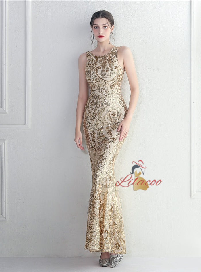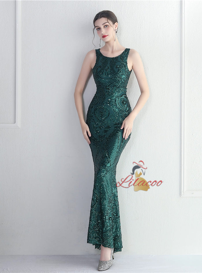 Mermaid Scoop Neck Backless Beading Prom Dress