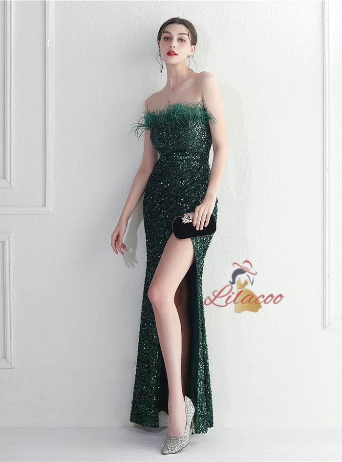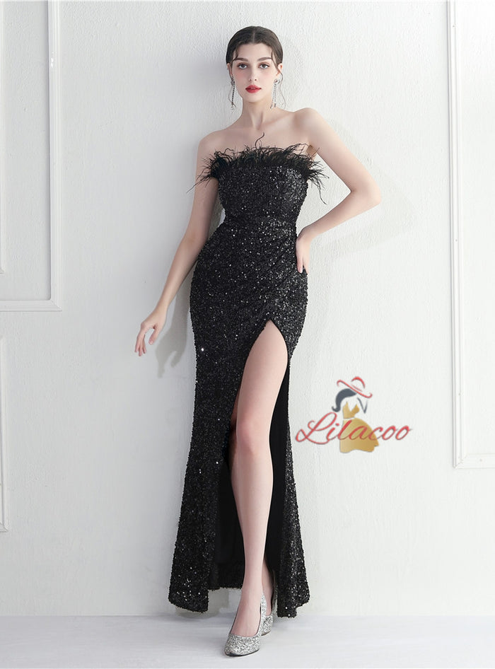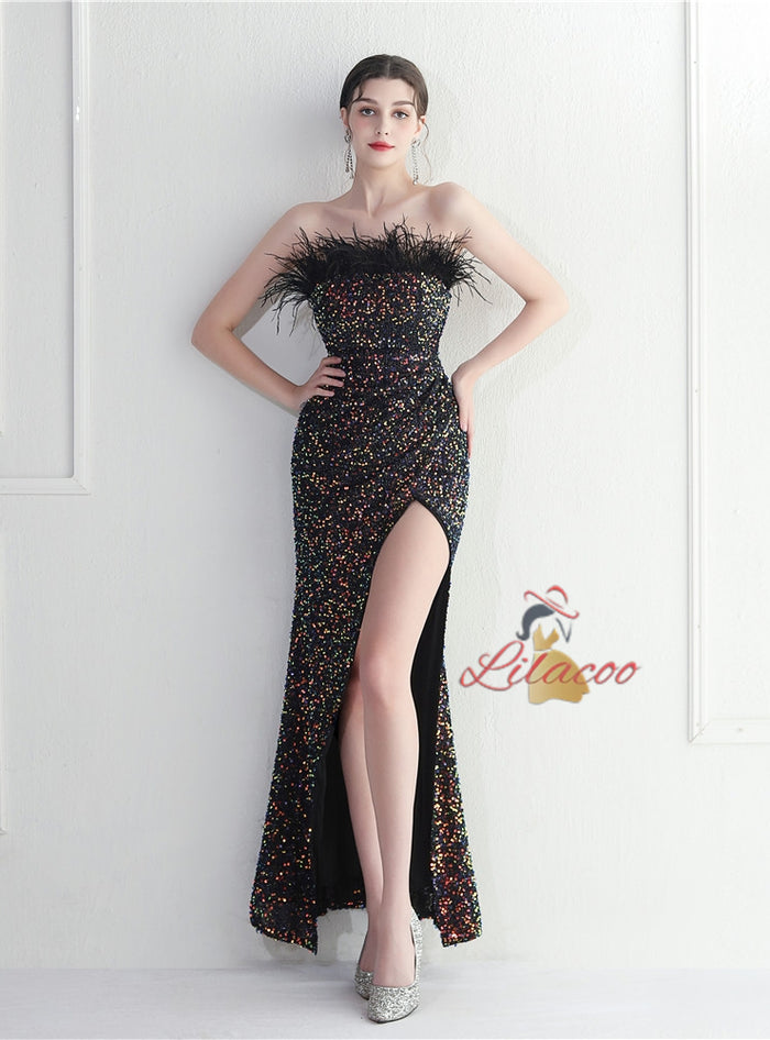 Mermaid Sequins Strapless Prom Dress