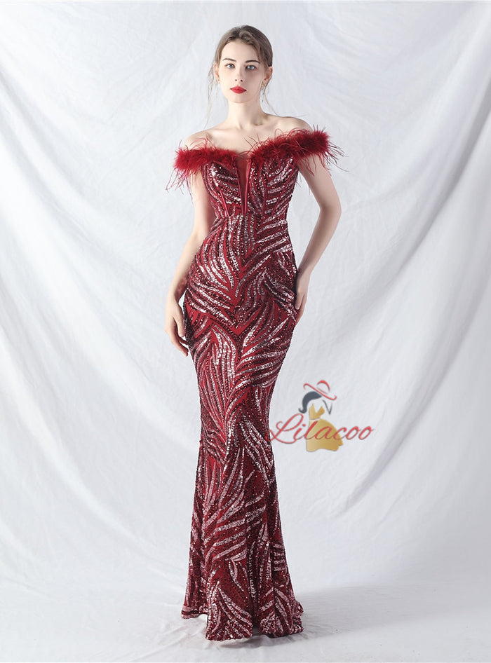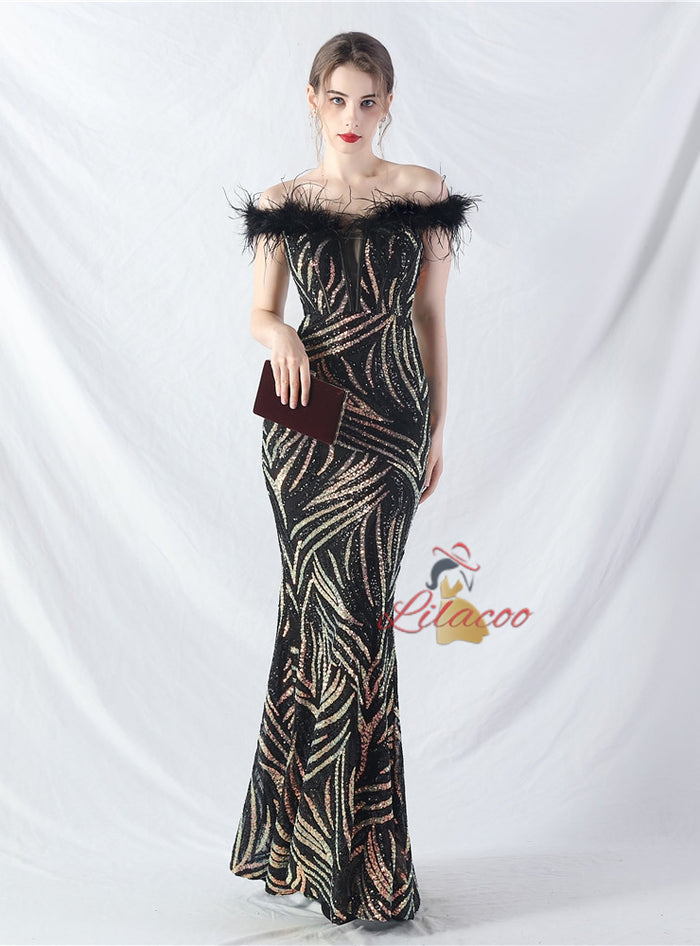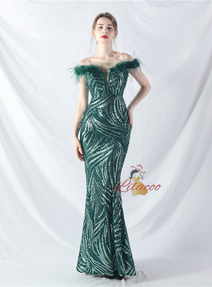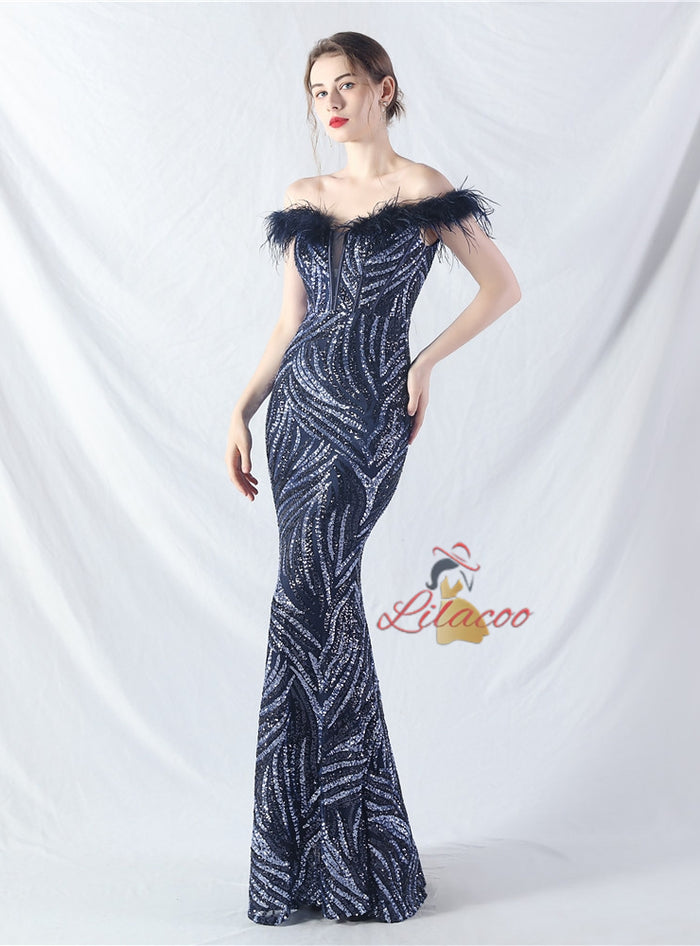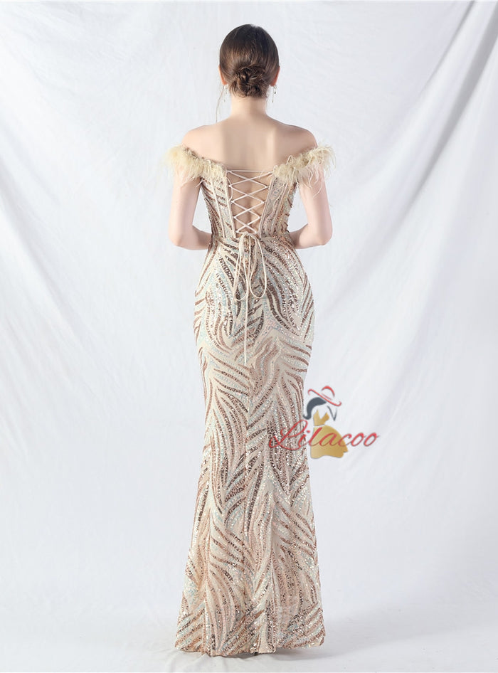 Mermaid Sequins Off the Shoulder Split Prom Dress