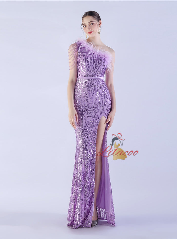 Mermaid Sequins One Shoulder Beading Prom Dress