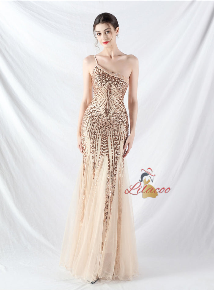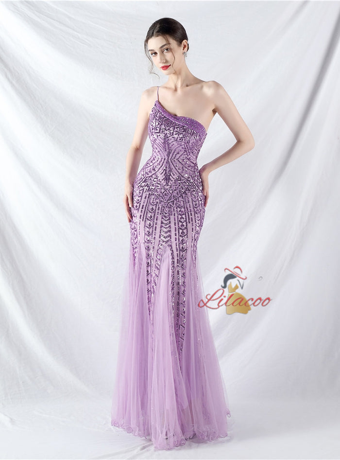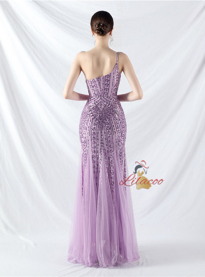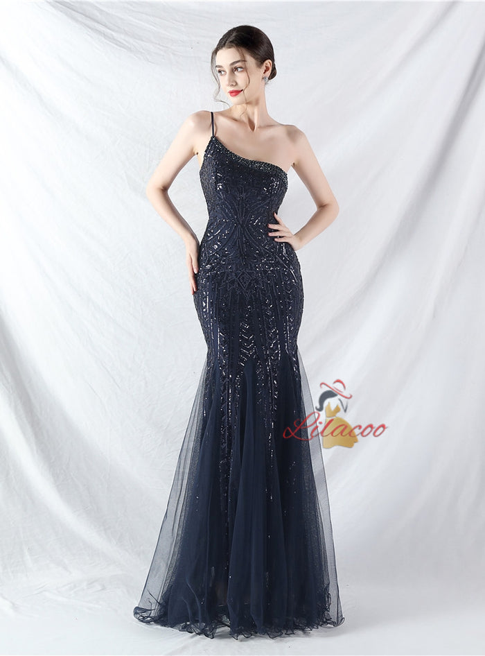 Mermaid Sequins One Shoulder Beading Prom Dress