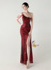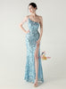 Mermaid Sequins One Shoulder Split Beading Prom Dress