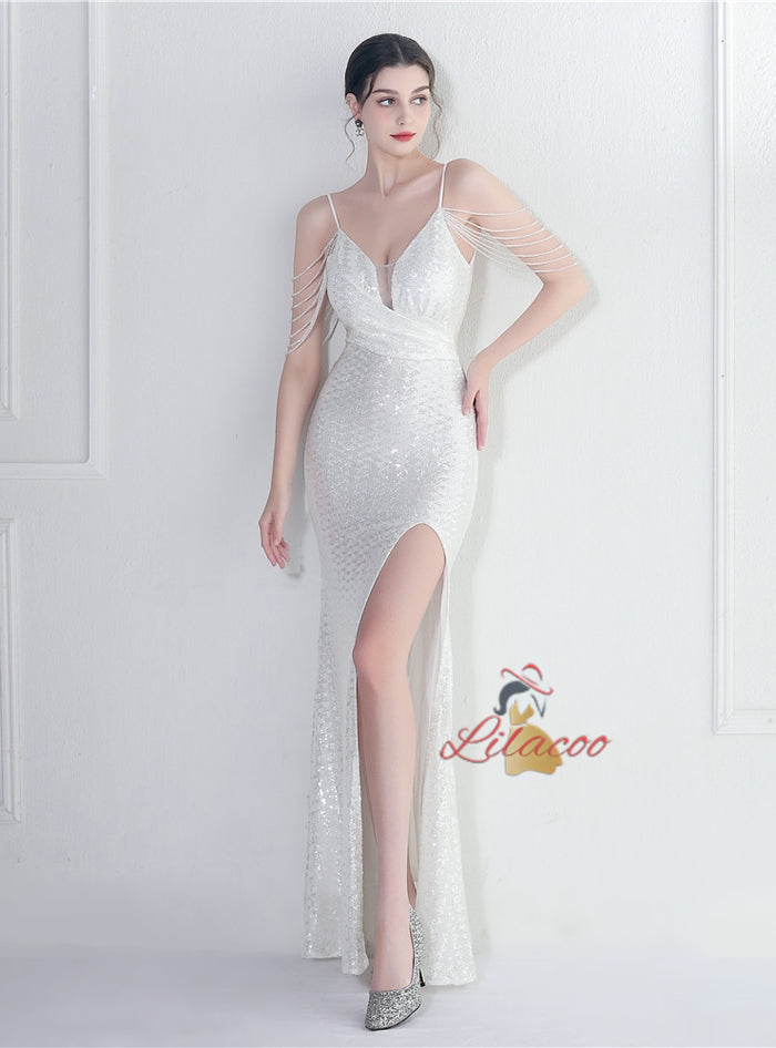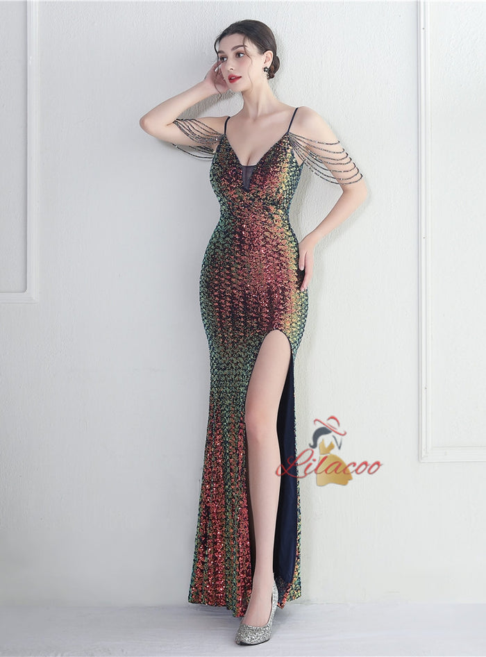 Mermaid Sequins Spaghetti Straps Beading Prom Dress