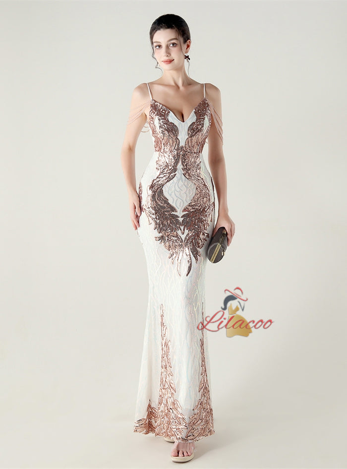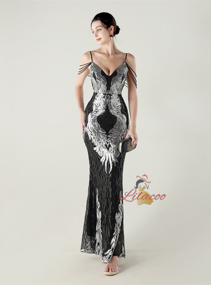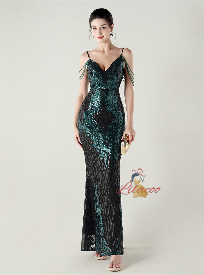 Mermaid Sequins Spaghetti Straps Beading Prom Dress