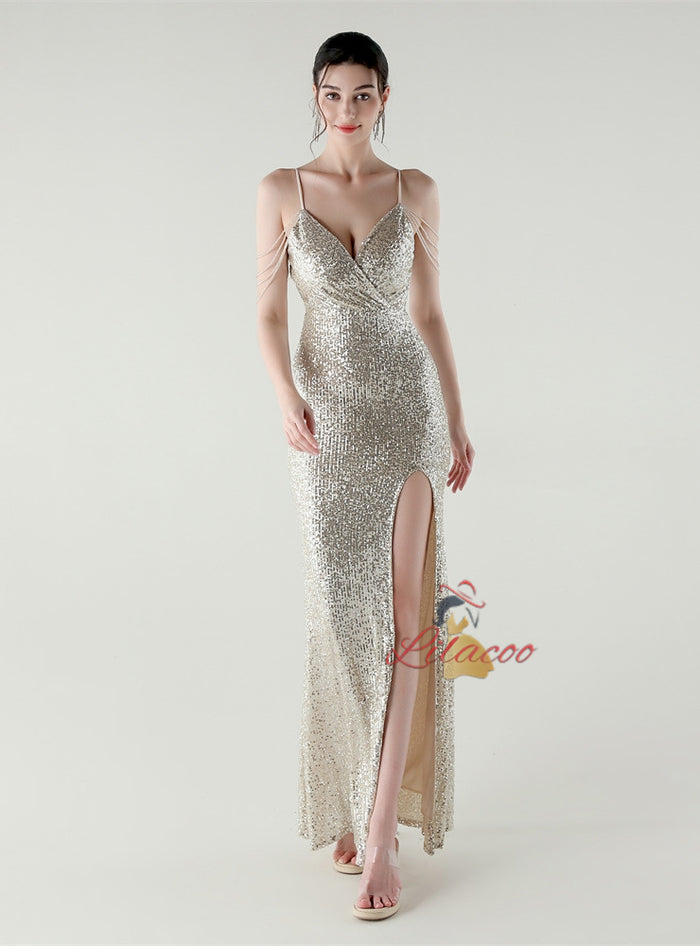 Mermaid Sequins Spaghetti Straps Beading Prom Dress