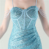 Mermaid Sequins Spaghetti Straps Pleats Beading Prom Dress