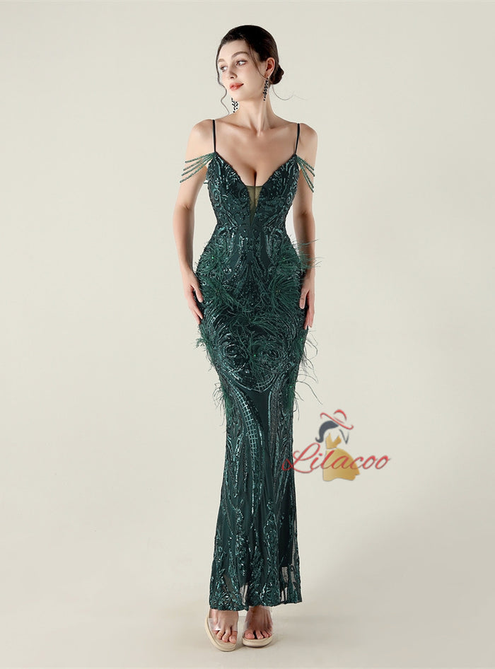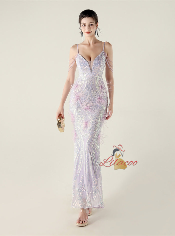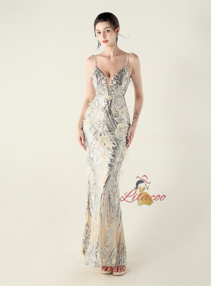 Mermaid Sequins Spaghetti Straps Prom Dress