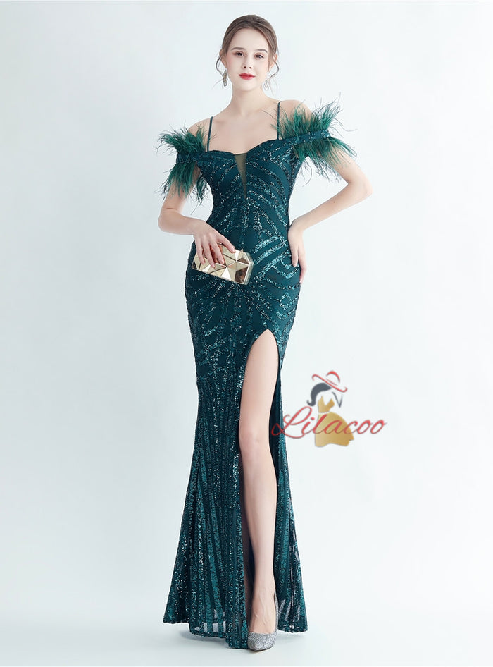 Mermaid Sequins Spaghetti Straps Prom Dress
