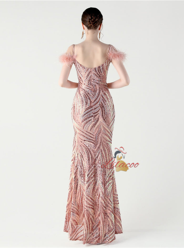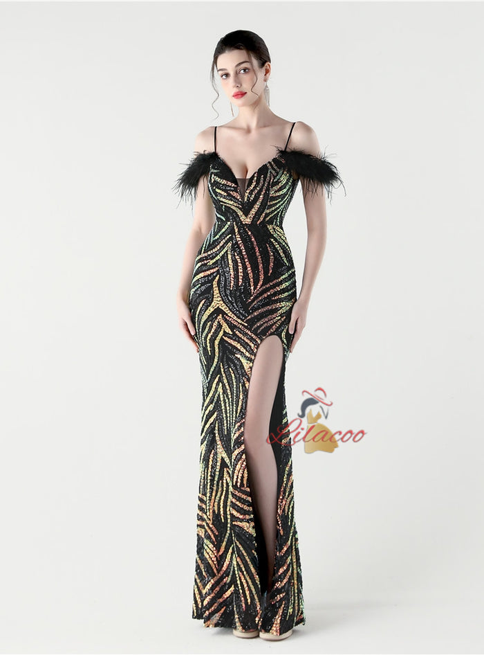 Mermaid Sequins Spaghetti Straps Split Prom Dress