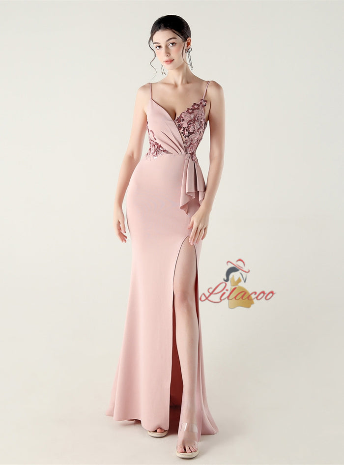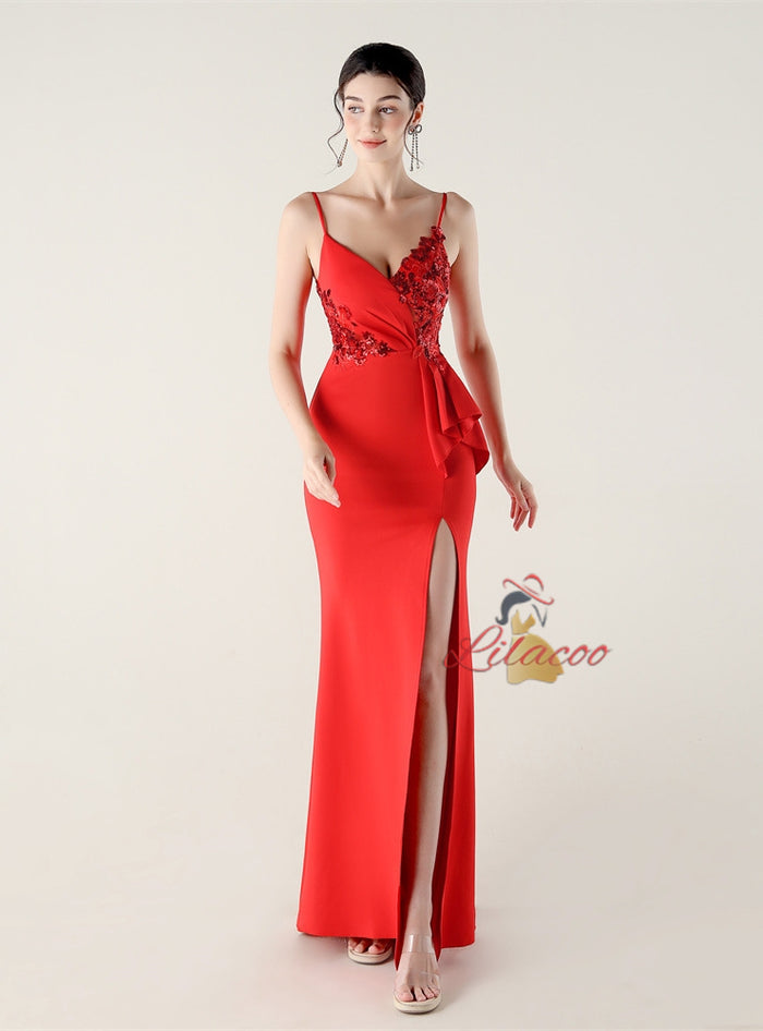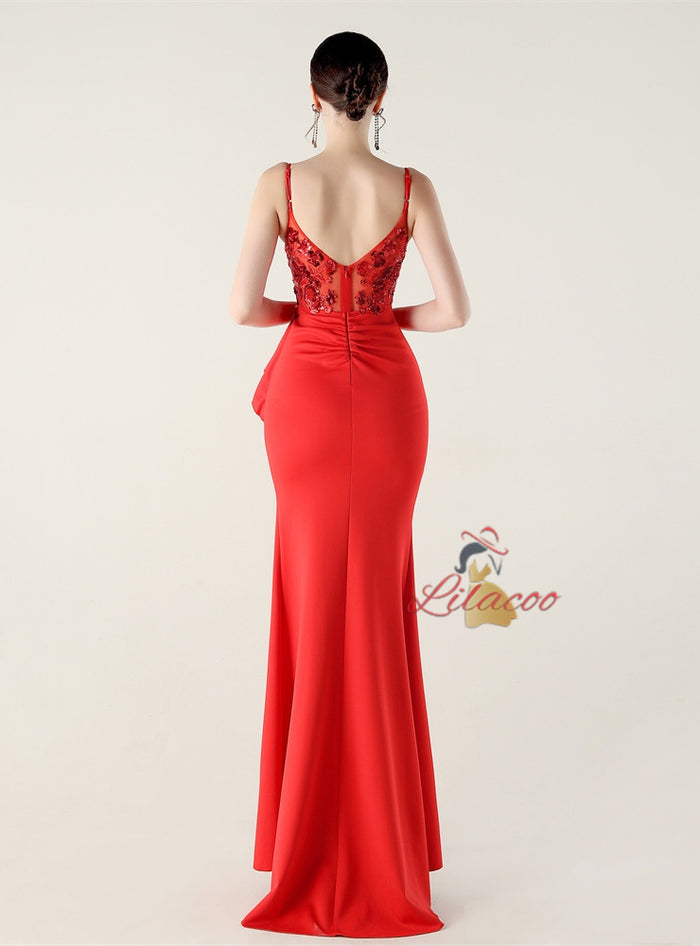 Mermaid Spaghetti Straps Sequins Split Prom Dress