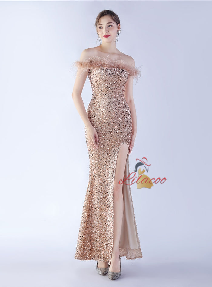 Mermaid Split Off the Shoulder Sequins Prom Dress