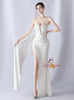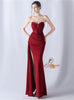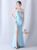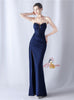 Mermaid Strapless Pleats Beading Split Prom Dress
