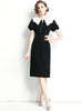 Retro Lantern Sleeve Slim Short Sleeve Black Dress
