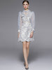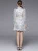 Retro Stand Collar Long Sleeve Button Lace Stitching Dress