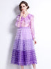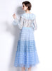 Ruffled Long Sleeve Blouse+Mesh Layer Skirt Suit