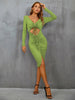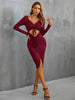 Sexy Drawstring Slit Long Sleeve Dress