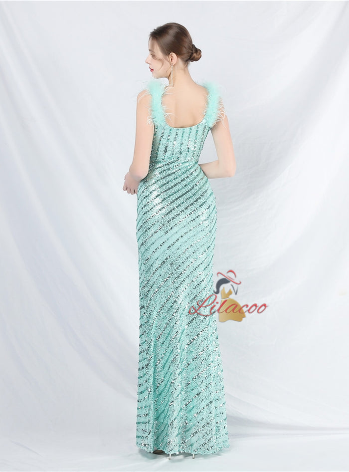 Sexy Mermaid Sequins Split Prom Dress