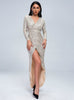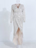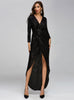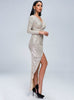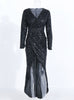Sexy V-neck Long Sleeve Sequined Dress With High Split