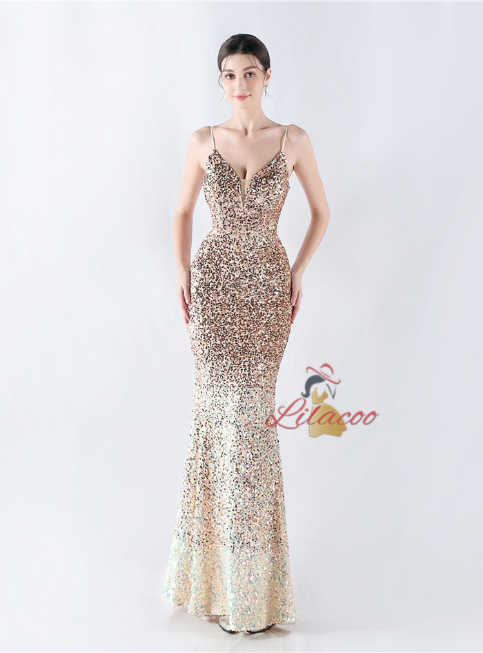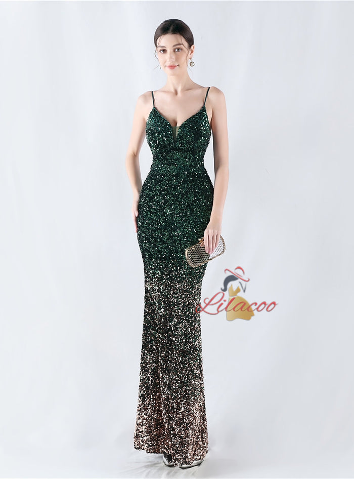 Spaghetti Straps Mermaid Sequins Prom Dress