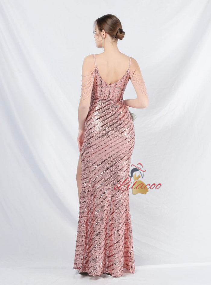 Spaghetti Straps Sequins Beading Prom Dress