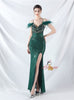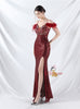 Spaghetti Straps Sequins Split Prom Dress