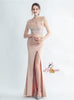 Spaghetti Straps Split Feather Prom Dress