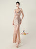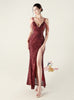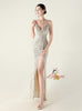 V-neck Mermaid Sequins Spaghetti Straps Beading Prom Dress