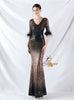 V-neck Short Sleeve Sequins Mermaid Prom Dress