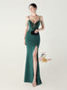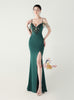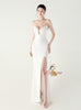 White Mermaid Spaghetti Straps Appliques Beading Prom Dress