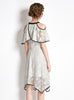 White V-neck High Waist Slim Lotus Leaf Lace Dress