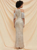 Women Fish Tail Sequins Hanging Neck Tassel Dress