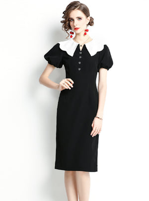 Round Neck Lotus Leaf Short Sleeve Dress