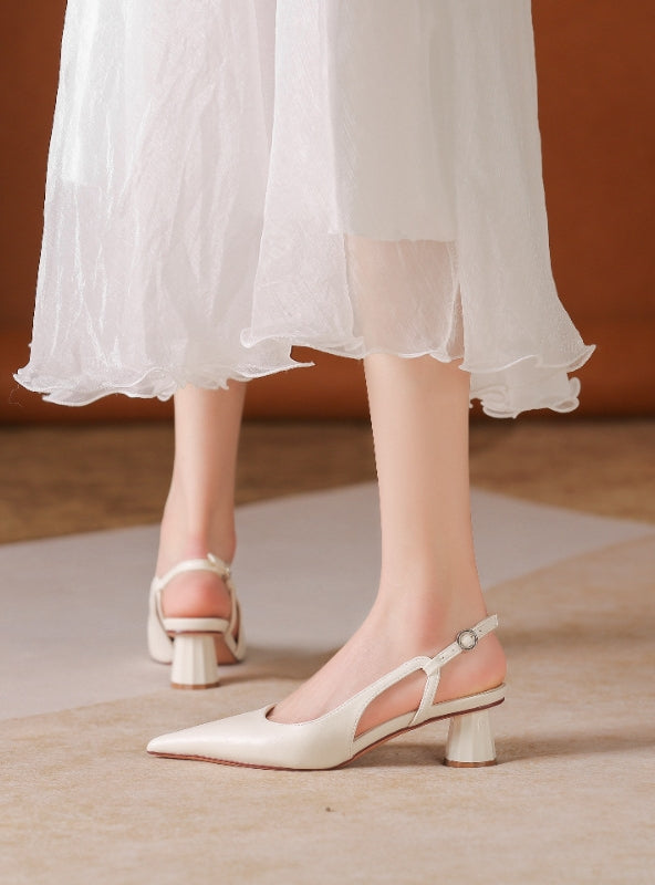 Falling in love with this pair of slingback heels is easy when they offer such timeless elegance and comfort. The sleek, pointed toe elongates the leg, giving you a refined and polished look suitable for both day and evening wear. Made from high-quality, glossy materials, the nude tone of the shoe is incredibly versatile, pairing effortlessly with any outfit, from office wear to special occasions. The mid-height, chunky heel adds a modern touch while providing comfort and stability throughout the day. The delicate slingback strap with a secure buckle ensures a perfect fit, making these heels not only stylish but practical as well. Whether you’re looking to add a subtle flair to your everyday wardrobe or searching for the perfect shoe for a special event, these heels are an excellent choice for women who value both fashion and comfort.