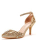 7 CM Thin Heel Pointed Gold Sequined Sandals