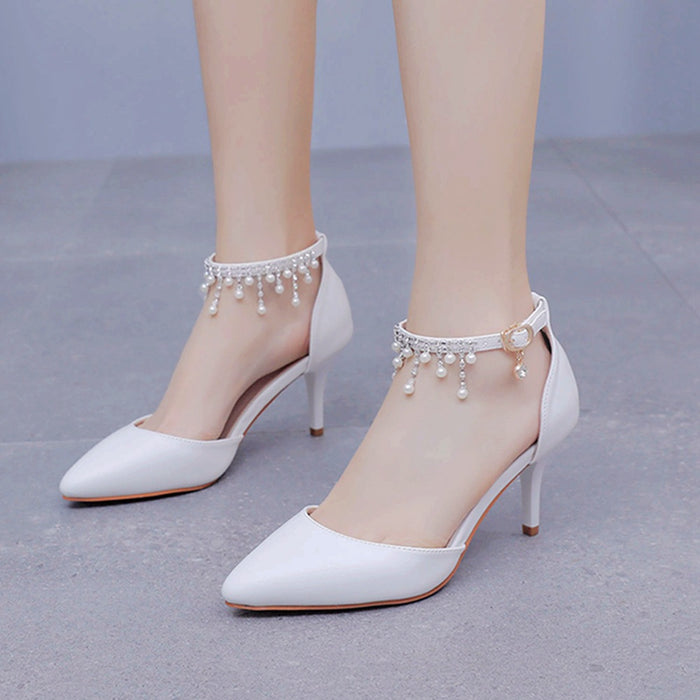 7 cm Thin-heeled Pointed Beaded Tassel Sandals