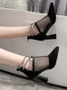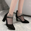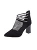 Mesh Pointed Thick Heel Hollow High Heel Cool Boots