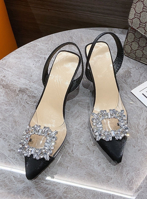 2023 Metal Rhinestone Pointed High Heels Sandals