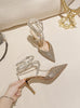 Pointed Strap Rhinestone High Heels Transparent Sandals