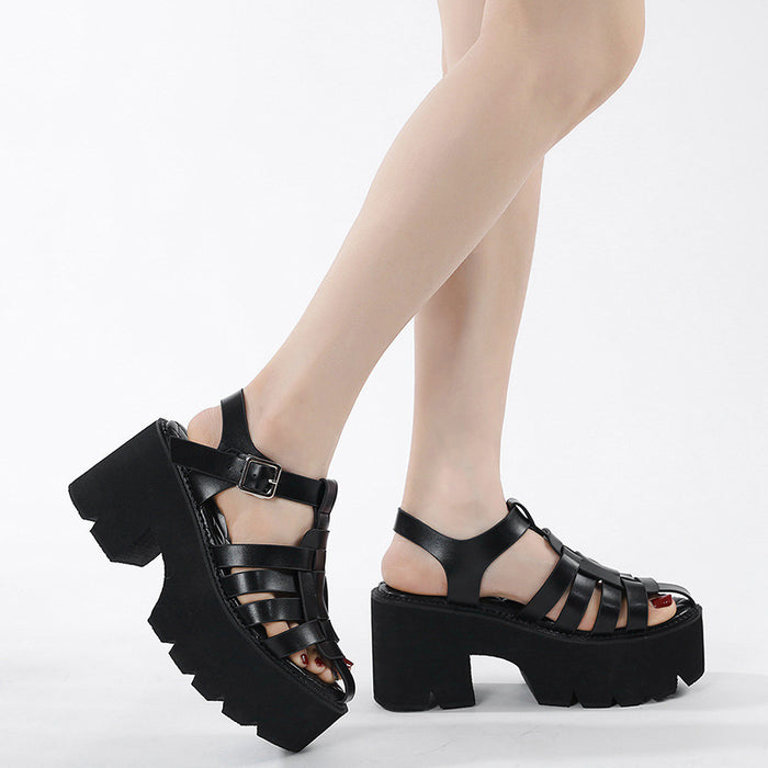 Popular elements: belt decoration, shallow mouth, thick heel, buckle